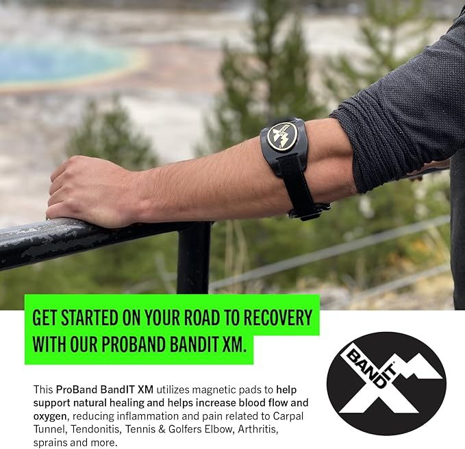 - ELBOW & FOREARM RELIEF - This ProBand BandIT XM utilizes magnetic pads to help support natural healing and helps increase blood flow and oxygen, reducing inflammation and pain related to Carpal Tunnel, Tendonitis, Tennis & Golfers Elbow, Arthritis, sprains and more. Get started on your road to recovery with our ProBand BandIT XM.
