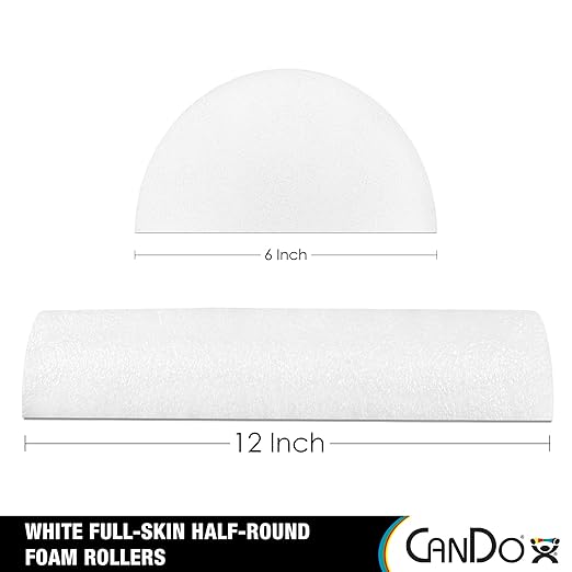 Cando-30-2341 Full-Skin PE Foam Roller For Muscle Restoration, Massage Therapy, Sport Recovery, And Physical Therapy. White, 6" x 12", Half-Round