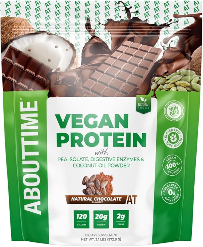 About Time Vegan Protein Powder 20g Chocolate, Natural Ingredients, Non-GMO, Plant Based, Gluten Free, Soy Free, Dairy Free, 32 Servings