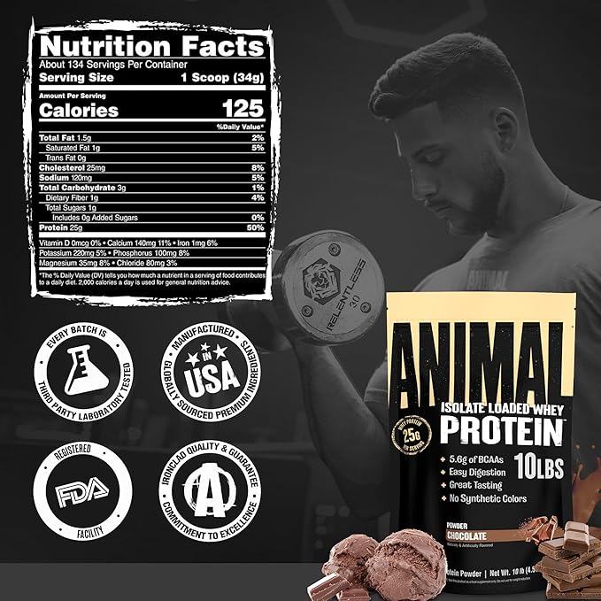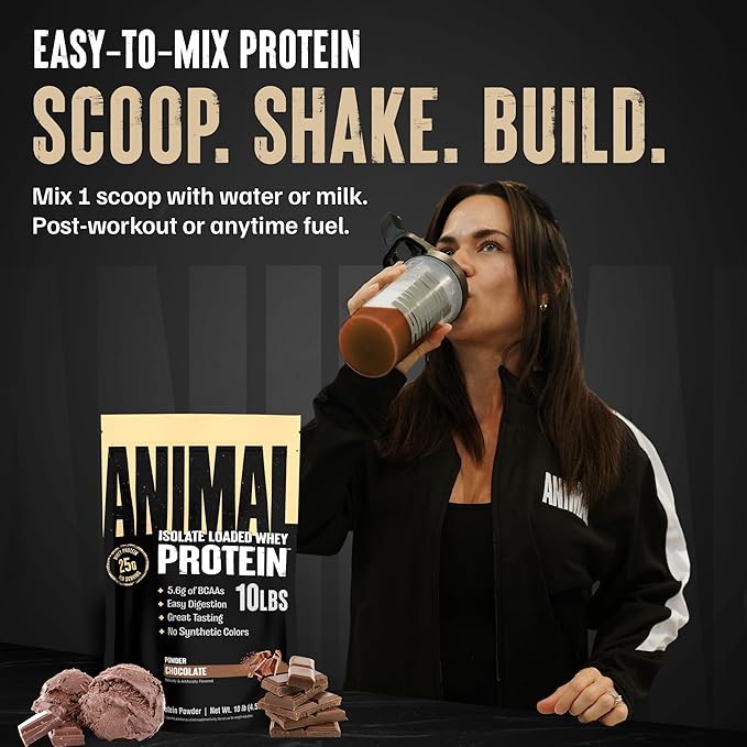 Animal Whey Isolate Protein Powder - Loaded for Pre & Post Workout Muscle Builder and Recovery with Digestive Enzymes for Men & Women - 25g Protein, Great Taste, Low Sugar - Chocolate 10 lbs
