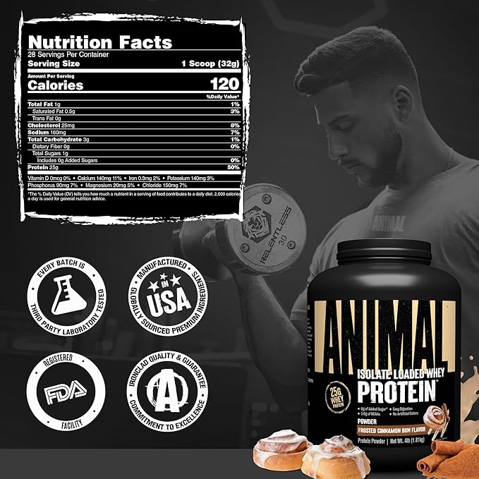 Animal Whey Isolate Protein Powder - Loaded for Pre & Post Workout Muscle Builder and Recovery with Digestive Enzymes for Men & Women - 25g Protein, Great Taste, Low Sugar - Frosted Cinnamon Bun 4 lbs