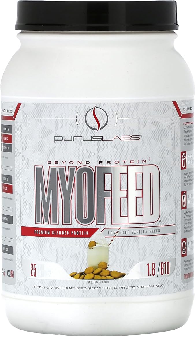 Purus Labs Myofeed Blended Protein | Ultra Filtered Whey Isolate & Concentrate | Soluble Fiber & Digestive Enzymes | 25 Servings (Homemade Vanilla Wafer)
