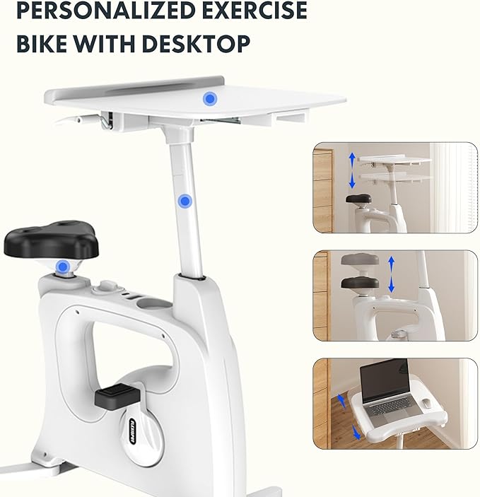 - ✅【3-IN-1 Fitness Bicycle】Part exercise bike, movable chair, and standing desk. This creative 3-in-1 stationary bike has a large enough desk to accommodate a laptop, notebook, and mobile phone, and is suitable for everyone in the family(5’1”- 6’2”)