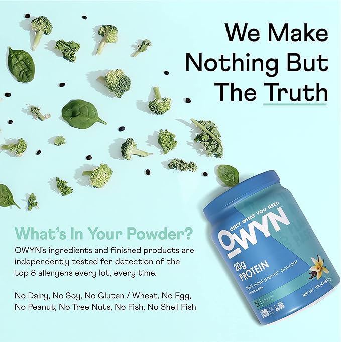 OWYN Only What You Need Plant-Based Protein Powder, Smooth Vanilla, 1.05 lbs