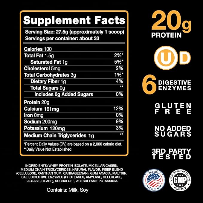 - WHEY ISOLATE & MICELLAR CASEIN PROTEIN BLEND: Combines fast-digesting whey isolate with slow-release micellar casein to provide sustained fuel for muscle recovery and an active lifestyle.