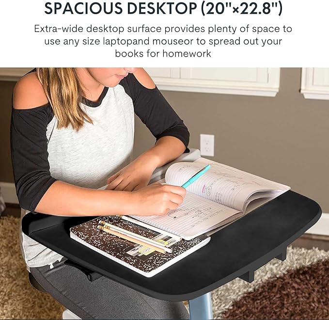 - Whether 5’1” or 6’2”, everyone in the family can comfortably use the cycle desk. The user-friendly pneumatic adjustment lever moves the desk bike seat up or down with a gentle press–no pins or knobs to adjust.