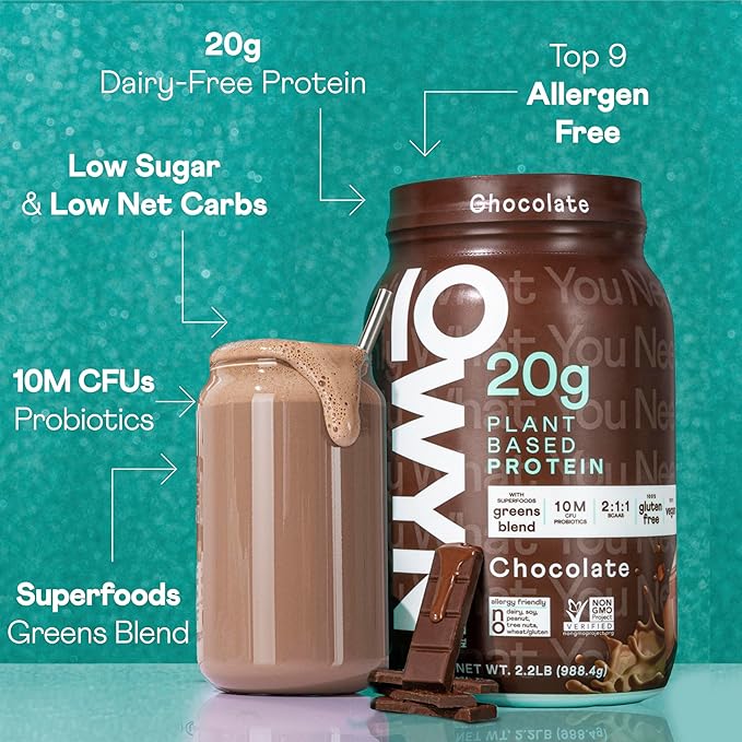 OWYN Only What You Need Dairy Free Protein Powder with 20g Protein, Probiotics, Superfoods Greens, Pea, Chia and Pumpkin Seed Blend (Chocolate, 2.2 Pound - Pack of 1)