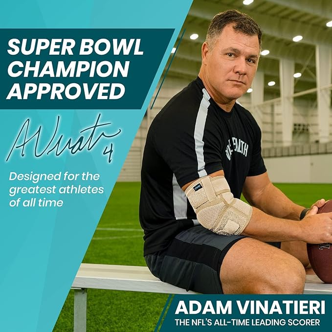 Vive Elbow Brace - Tennis Compression Sleeve - Wrap for Golfers, Bursitis, Left or Right Arm - Tendonitis Support Strap for Golf, Men and Women - Epicondylitis and Sports Recovery (Beige, Standard)