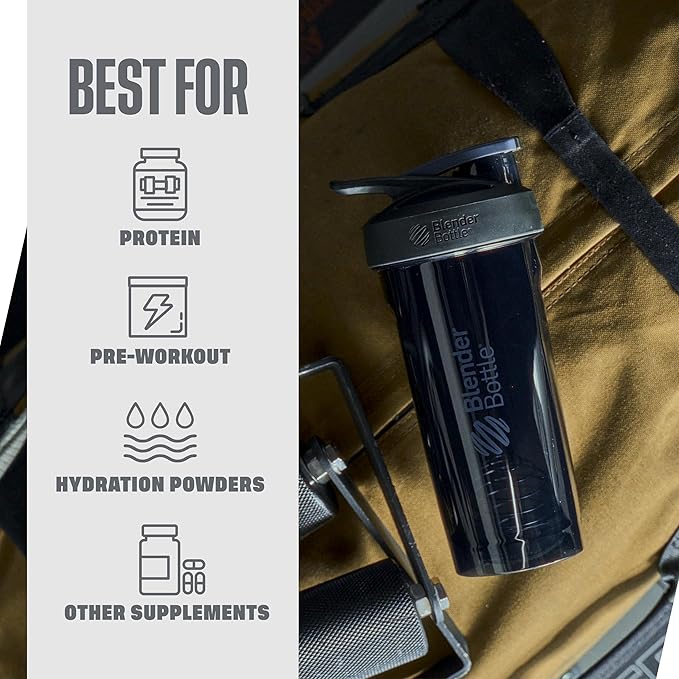 BlenderBottle Sport Shaker Bottle with Wire Whisk, 24-Ounce, Black – Protein Shakes & Hydration for Athletes & Fitness Enthusiasts, Easy Mixing, Durable & Lightweight, Lockable Lid