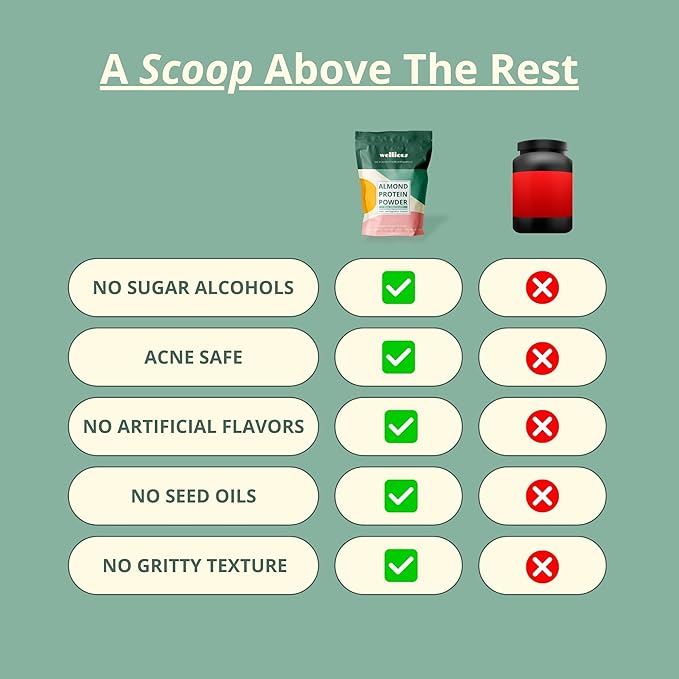 - CLEANEST INGREDIENTS - Made with just 4 real food ingredients. Wellious is the best clean protein powder sweetened with only monkfruit, and is a blend of almond protein and chickpea protein. We use real cocao to make real chocolate protein and real Madagascar vanilla beans to make real vanilla protein.