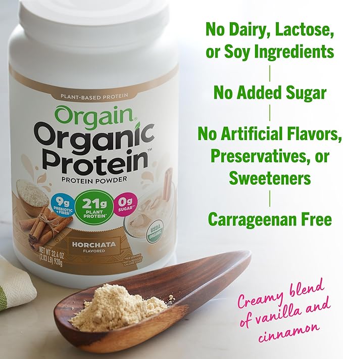 Orgain Organic Vegan Protein Powder, Horchata - 21g of Plant Based Protein, Low Net Carbs, Gluten Free, Lactose Free, No Sugar Added, Soy Free, Kosher, Non-GMO, 2.03 Lb