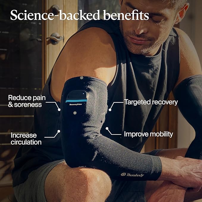 - RecoveryPulse Arm by Therabody: Arm Compression Massager - Wearable Compression Arm Massager With Vibration For On The Go Relief - Arm Massager for Circulation - Muscle Therapy Sleeve DeviceTargeted On The Go Relief: RecoveryPulse Arm combines compression, vibration, and proprietary FlowKnit fabric in one wearable. Experience convenient pain relief and targeted recovery with our innovative leg compression arm massager.