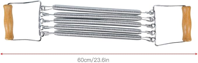 - DETAILS: Total length: Approx. 60cm/23.6in, Handle width: Approx. 12cm/4.7in, Handle length: Approx. 12cm/4.7in, Spring length: Approx. 36cm/14.2in. Please note that the new type and old type of this product will be sent randomly, and make sure you will not mind before ordering.,Chest Expander