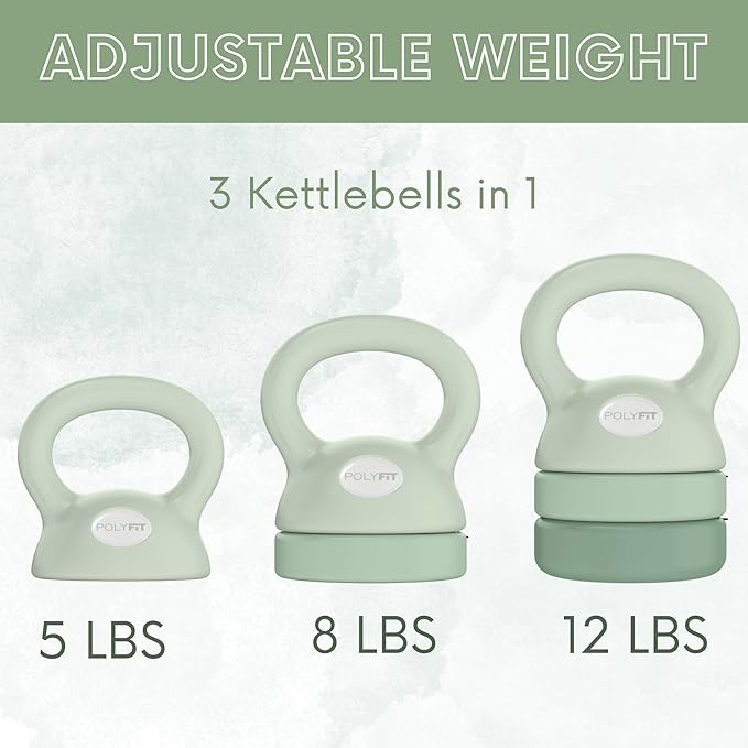 - GOOD FOR BEGINNERS TO PROS | 3 KETTLEBELLS IN 1. No need to purchase several kettlebells everytime you change your exercise routine! Polyfit's Adjustable Kettlebell is easy to adjust, perfect for any fitness newbie or for the enthusiast looking to challenge themselves a little more. With weights that you can easily add or remove, you can choose from 5 lbs, 8 lbs, or 12 lbs.