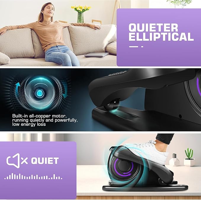 • Mini and Compact, Easy to Use: You don't need to assemble, you can use it directly. The compact and portable design makes it easy to move this under desk elliptical around your home. It does not make unpleasant noise, you can use it quietly at home and in the office.