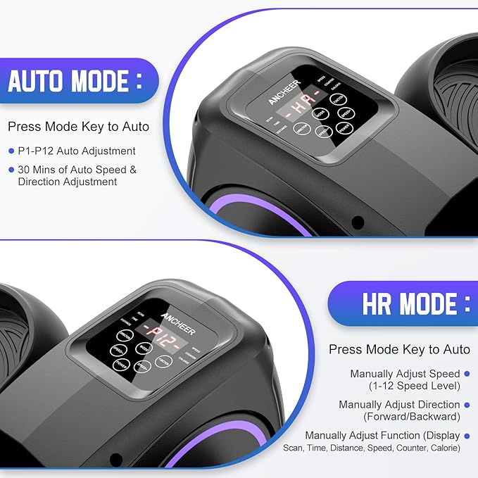 - Electric & Manual 2 IN 1: ANCHEER Under Desk Elliptical Machine has two using modes: plugging in the power to use or used it directly without power, this is our unique advantage. Designed with ultra-smooth gearing and a compact design, ANCHEER home ellipticals are ideal for exercising at home or the office without stressing your joints!