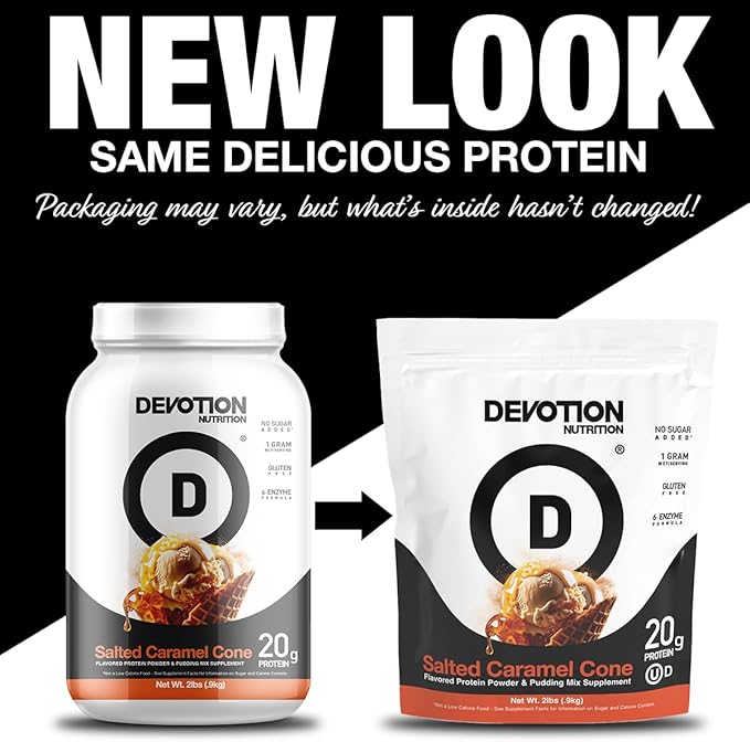 - DELICIOUS PROTEIN POWDER: Includes (1) 2lb Tub of Devotion Nutrition Salted Caramel Cone Protein Powder which equates to approximately 29 servings.
