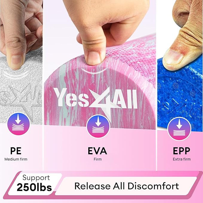 Yes4All EVA Firm Foam Roller for Stretching, Half Yoga Back Roller for Muscle Massage for Pilates, Yoga, Balance & Core Exercises - 12/36 inches