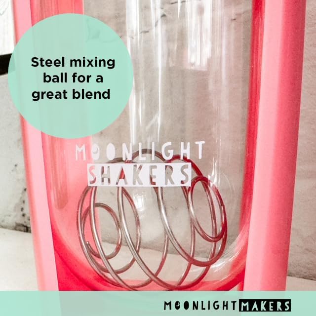 Moonlight Makers Blue 16oz Protein Shaker Bottle with Steel Whisk Ball, Leakproof Gym Bottle, Shaker Cups for Protein Shakes, Dishwasher Safe, Fitness Gifts, Preworkout Drink Mixer