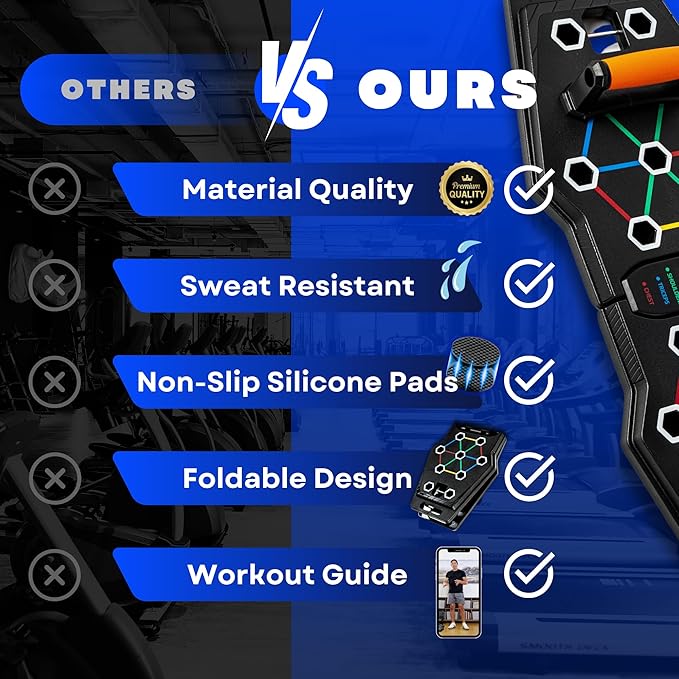 - Pushup Board at Home: Achieve a complete workout with the push up bar. Perfect for beginners to advanced gym-goers, this at home gym tool offers a all in one workout equipment for the perfect push up experience.