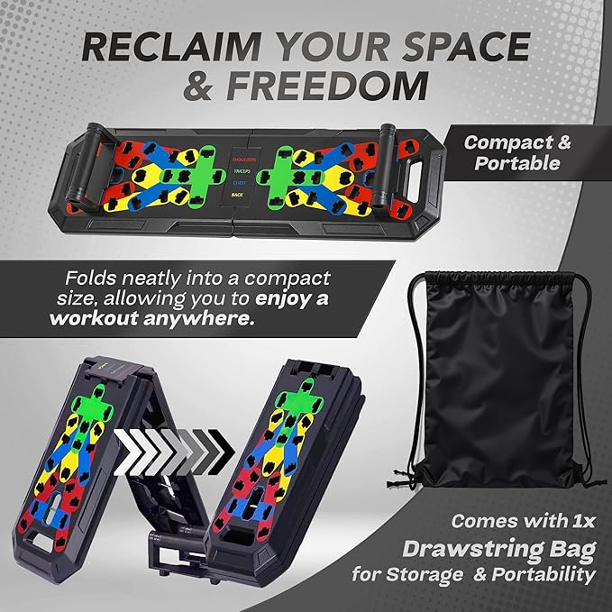 - Reclaim Your Space & Freedom - Take your chest workouts to the next level with our compact, foldable gym equipment. Perfect for workout equipment for men and women, it folds neatly into a compact size, allowing you to enjoy a workout anywhere.