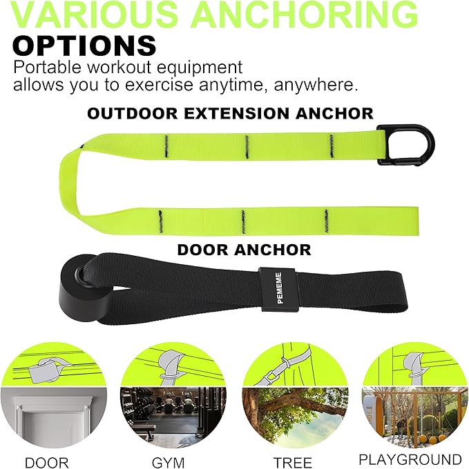 - [Complete Exercise Solution] - Start or enhance your home gym with our versatile kit that includes an adjustable door anchor, extension straps, and two durable handles. Suitable for both indoor and outdoor workouts, it’s designed to attach securely to any robust fixture, providing a comprehensive range of exercises to enhance your strength and fitness.