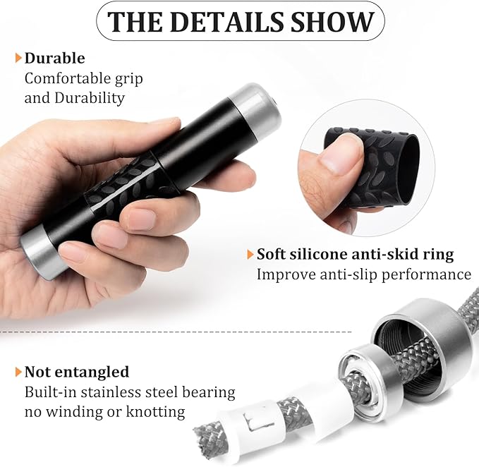 - Stable and Durable:The weighted jump rope Built-in metal ball bearing system, 360°smooth rotation, no winding or knotting,allowing you to focus on your workout without disruptions,helping you achieve your fitness goals faster and get a better workout with the same effort.