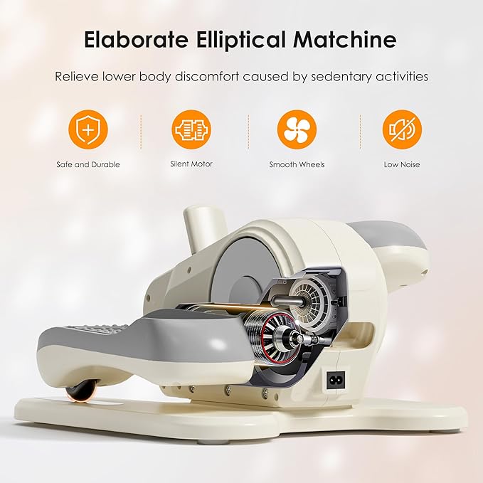 - SILENT SETTING- Our ellipse leg exerciser is equipped with the latest mute system,which ensures an ultra-quiet workout that won't disturb your coworkers or baby's sleep, even at high speeds.Whether you're working, watching TV or reading, it fits easily into your daily routine without disturbing your family or coworkers.