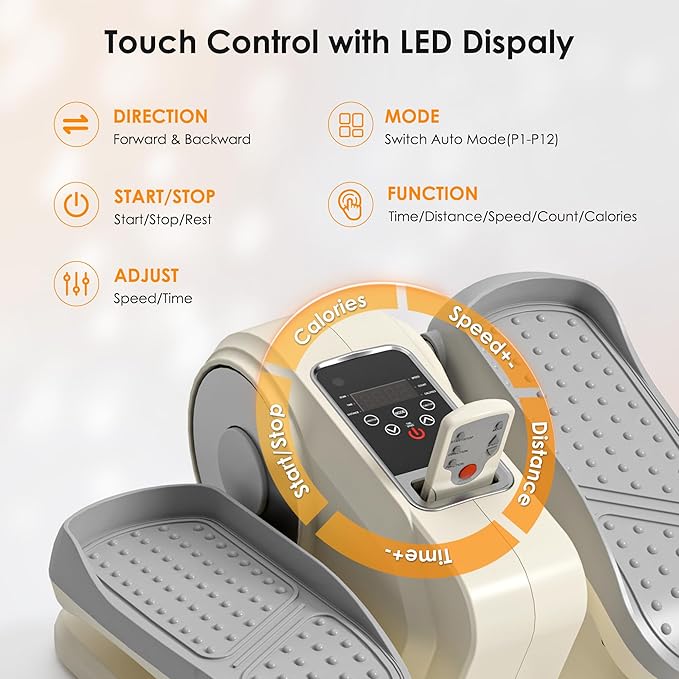 - LCD MONITOR & REMOTE CONTROL- The pedal exerciser features with the LCD display,you can easily track Scan,Speed,Time,Count,Distance,Calories in real time. Also itโs equipped with thoughtful remote control,allowing you to change mode without bending over, reducing strain on your back. This means you can sit and work or relax while still getting the exercise you need.