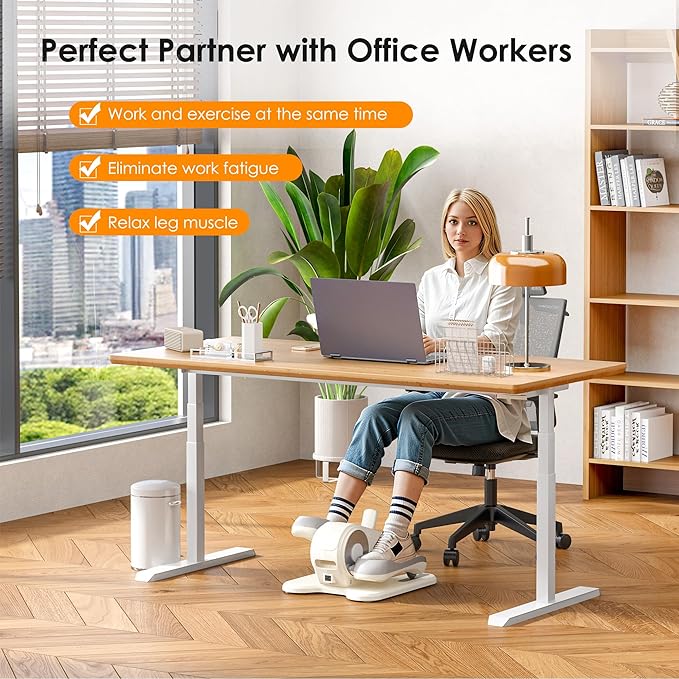 - UNDER DESK ELLIPTICAL- Low-Intensity Exercise under the desk elliptical is ideal for sedentary office workers, seniors with leg discomfort, and those undergoing leg rehab. The elliptical's scientific exercise track design helps to promote blood circulation, strengthen lower body muscles and improve joint flexibility,at the same time help the legs adapt and recover quickly.