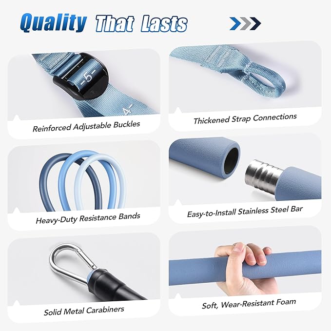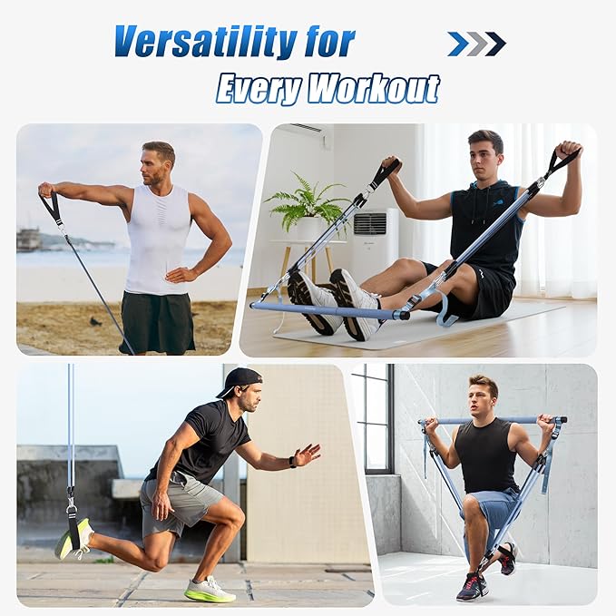 - 【Stylish & Durable | Family-Friendly Fitness】The Pilates bar set flaunt sleek, modern color accents while enjoying industrial-grade steel pipes and Natural latex tube built to last. Lightweight yet sturdy, it’s ideal for busy lifestyles—squeeze in a workout during TV time or office breaks! Moms, athletes, and seniors alike will love its effortless setup and space-saving storage.