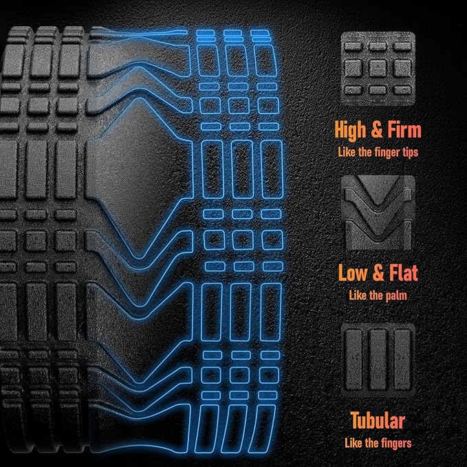 - Enhanced Blood Flow & Recovery: The 3D grid surface promotes circulation and oxygen flow while rolling.Its multi-density ridges offer varying pressure levels, helping you achieve deeper stretches and faster muscle recovery. Indulge in unparalleled comfort with our back wheel for pain relief.