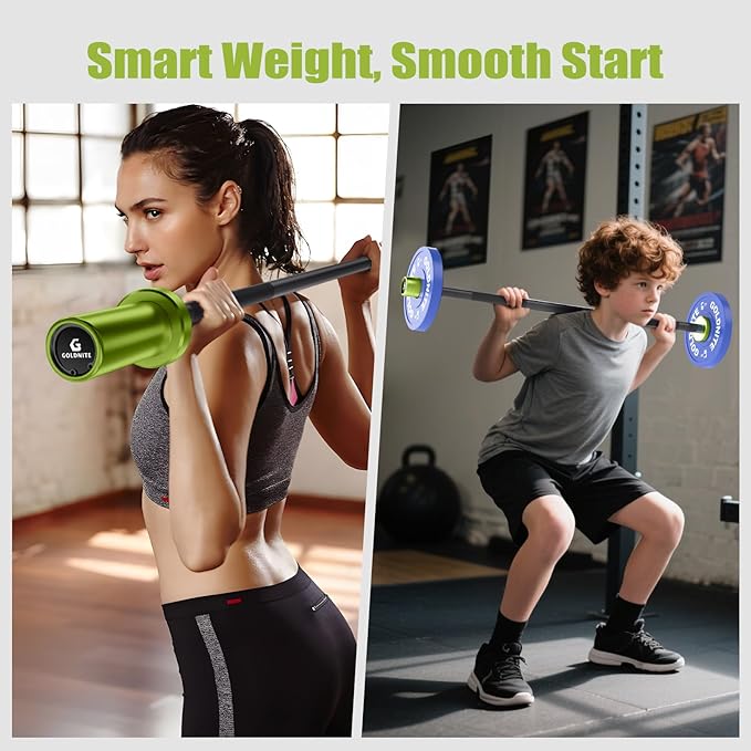 - Olympic-Compatible&Progressive Training Ready: Fits all standard 2" Olympic plates (max 100lb load capacity), allowing adjustable resistance from basic conditioning to intermediate challenges. This mini barbell bar is ideal for teaching weightlifting fundamentals to teens, fitness novices, and home gym users. The balanced mini kids barbell design helps women, kids, and beginners maintain proper form for strength training, HIIT workouts