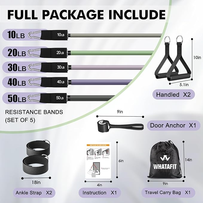WHATAFIT Resistance Bands, Exercise Bands,Resistance Bands for Working Out, Work Out Bands with Handles for Men and Women Fitness, Strength Training Home Gym Equipment