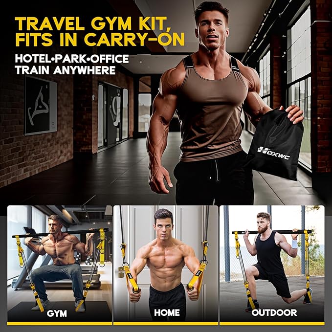 - Ultra-Portable: Take your gym anywhere! The included carry bag makes it easy to train at home, outdoors, or on the road. Attach to doors or use freestanding for squats, stretches, and warm-ups. Just 30 minutes a day burns calories and activates muscles—ideal for busy lifestyles.