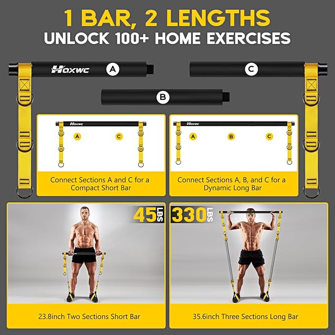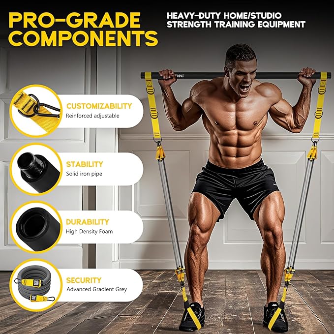 - Premium Heavy-Duty Pilates Equipment: Built to last with industrial-grade materials, our Portable Pilates Bar Kit with Resistance Bands features 3 steel-core pipes wrapped in soft 5mm foam for a secure, comfortable grip. Perfect for intense workouts, this professional adjustable heavy-duty squat workout equipment for men delivers unmatched durability for serious fitness enthusiasts.