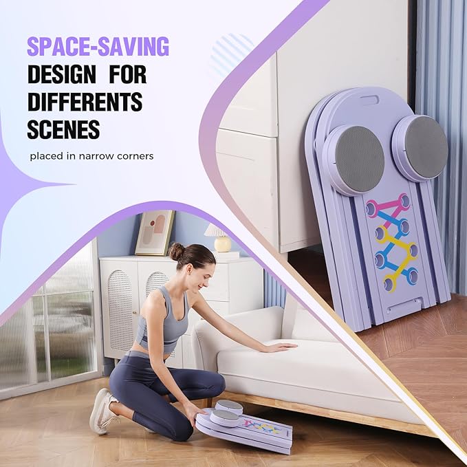 - 【Versatile Full Body Training】 Mosdos Foldable Pilates Reformer Board combines 6-in-1 functions: core trainer, resistance band, push-up handles, balance board, ab roller and plank. Perfect for shaping abs, improving flexibility, burning fat or rehabilitation training. Suitable for all levels from beginners to advanced athletes.