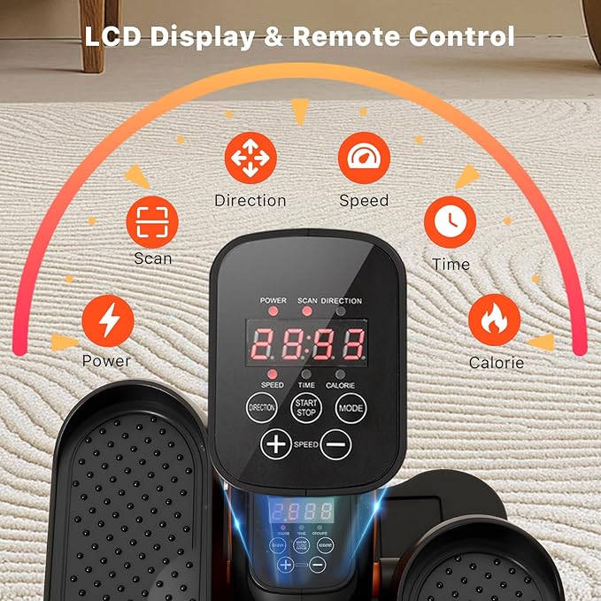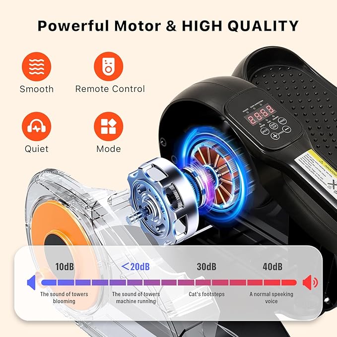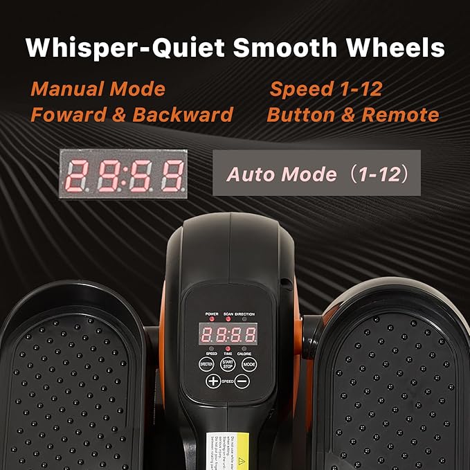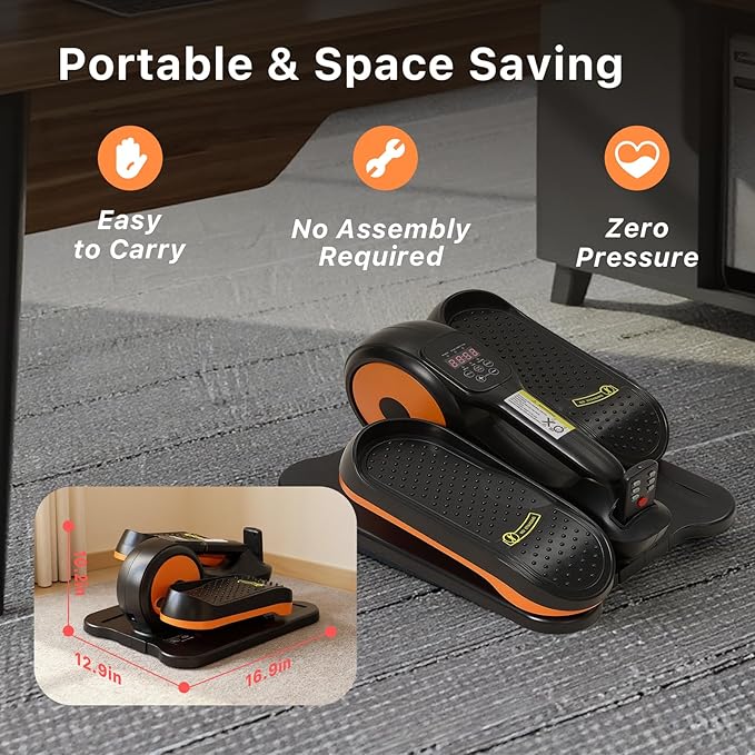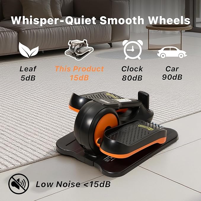 - π[Whisper-Quiet & Knee-Friendly]: Featuring silent wheels&advanced sound-dampening technology(β€13dB), making it perfect for offices, home, or shared spaces.Enjoy a quiet, consistent, and motor-driven elliptical motion for a low-impact, joint-friendly cardio workout anytime.