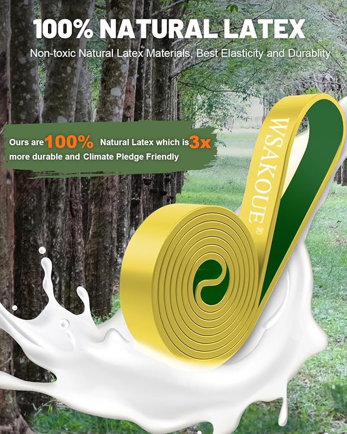 - Natural and Durable: Our pull up assistance bands are made of 100% natural latex from Malaysia, which makes WSAKOUE resistance bands soft and odorless. The resistance bands can remain high elastic after years of training and exercising