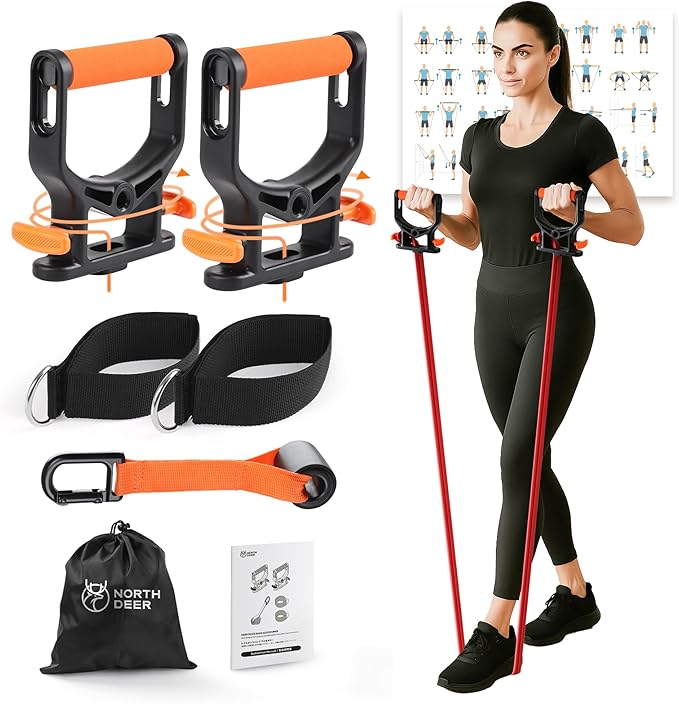 - Essential Accessories for Versatility: Includes 2 Power Handles, 1 reinforced door anchor, 2 adjustable ankle straps with padded cushions, a compact storage bag, and a quick-start workout guide.