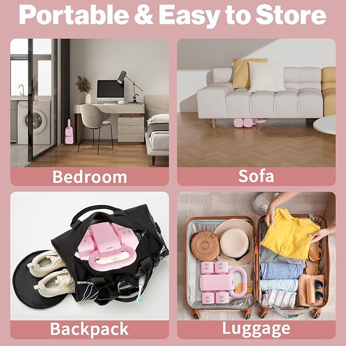 - 【Portable and Space-saving design】 This innovative kettlebell weights for women at home is 11.4'' * 10.8'' * 4''. It is under the sofa and into the luggage. Compact and Lightweight (only 12.1 lbs). Sculpt your full body anywhere, such as home, office, travel