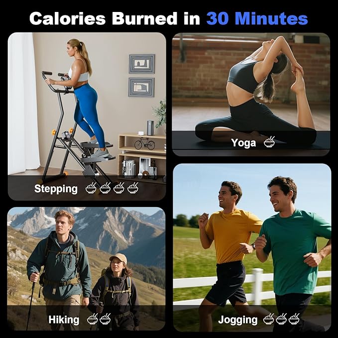 - 【Struggling to Stay Motivated?】Stay motivated by tracking calories burned, time, and steps of this stair climber.Plus, the built-in phone holder lets you watch videos or follow workout apps, so you can keep entertained and focused while you burn those calories.