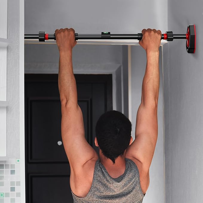 - Tool-Free Adjustable Design & Easy to Use: The adjustable pull up bar fits standard doorways 25.55inch(65cm) - 39.37inch(100cm) with no drilling required. Adjusts in seconds using secure tension bolts, holding up to 440lbs without damaging frames