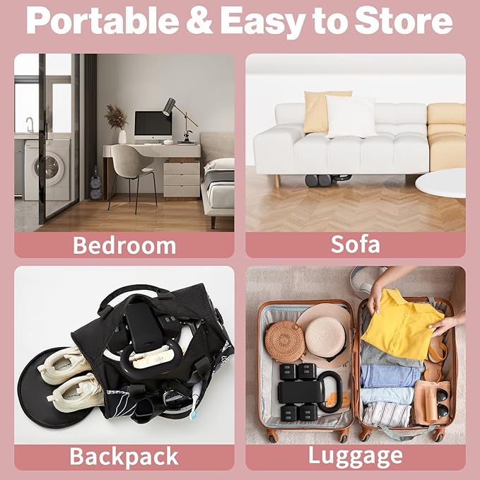 - 【Portable and Space-saving design】 This innovative kettlebell weights for women at home is 11.4'' * 10.8'' * 4''. It is under the sofa and into the luggage. Compact and Lightweight (only 12.1 lbs). Sculpt your full body anywhere, such as home, office, travel