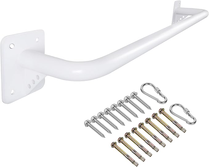 - Versatile Use with Extra Two Carabiners: Solid wall or wood mounted exercise bars for indoor & outdoor use, equipped with two extra carabiners for multiple exercise style, such as resistance training, suspension training, strength training, assisted pull-ups, cross-training. Great addition to your home gym workout.