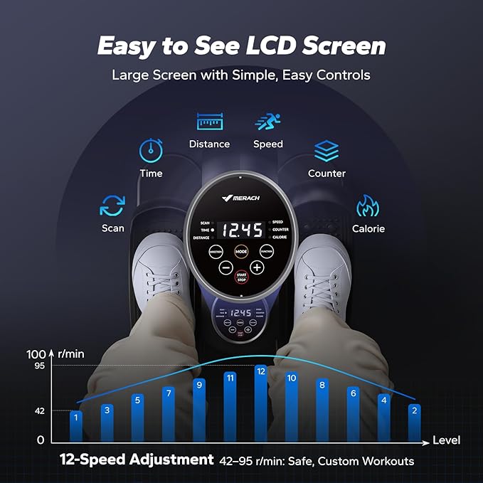 MERACH Under Desk Elliptical Exercise Machine, Ellipse Leg Exerciser as Seen on Tv for Seniors with 12 Adjustable Speeds & Remoter, Quiet Portable Seated Pedal Exerciser Fully Assembled