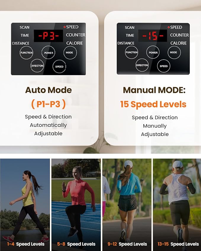 - 【2-in-1 Auto/Manual Ellipse Machine】Switch between Manual Mode (15 speed levels) and Automatic Programs (P1-P3) to vary your workout intensity with this under desk elliptical exercise machine. Pedals move forward and backward, making it ideal for leg toning, full-body exercise, and activating multiple muscle groups efficiently.