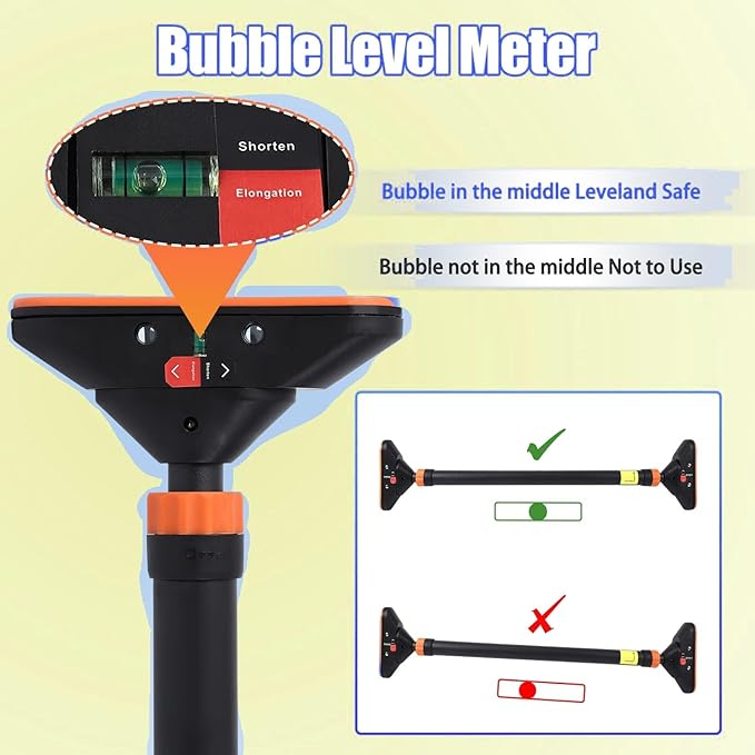 - Adjustable Width with Level Meter:Customize from 27.6" to 36.2" (70-92cm) to fit any standard doorway. Built-in horizontal bubble level ensures perfect balance β arrow alignment guarantees safe pull-ups, chin-ups, and leg raises.